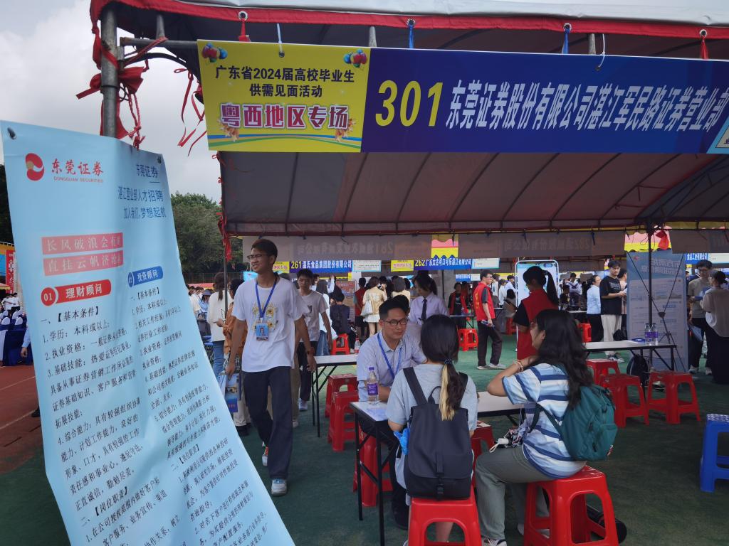 为做好2024届毕业就业工作,提高毕业生就业率,11月11日,经济学院与湛江市金融局和湛江市商会组织34家单位成为经济专区,参加我校承办的广东省2024届普通高校毕业生系列供需见面活动(粤西地区专场)。本次经济专区有广东华兴银行股份有限公司湛江分行、东莞证券股份有限公司湛江军民路证券营业部、中国人民财产保险股份有限公司湛江市分公司和广东鸿智智能科技股份有限公司等涉及金融、经济和贸易多个领域。学院全体领导到场进行指导,全体毕业班辅导员现场进行相关答疑解惑。