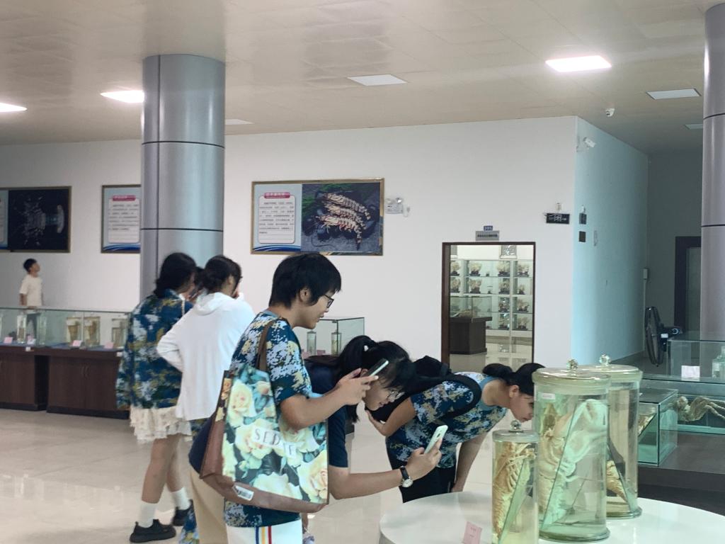 从馆内一楼的鱼类展厅到三楼的藻类展厅,丰富的藏品为同学们深入了解海洋文化,学习更多海洋知识提供有利条件,新生们始终热情高涨,对馆内各种精细的标本充满好奇,纷纷举起镜头进行拍照记录。水生生物博物馆是学校的特色教育资源之一,博物馆内的丰富多样的展品向新生们展示着海大独特的海洋特色文化,让新生沉浸在丰富多样的水生生物世界之中,领略大自然的奇异之美。培养了新生们关爱海洋,亲近海洋生物,提高保护生态环境的意识。