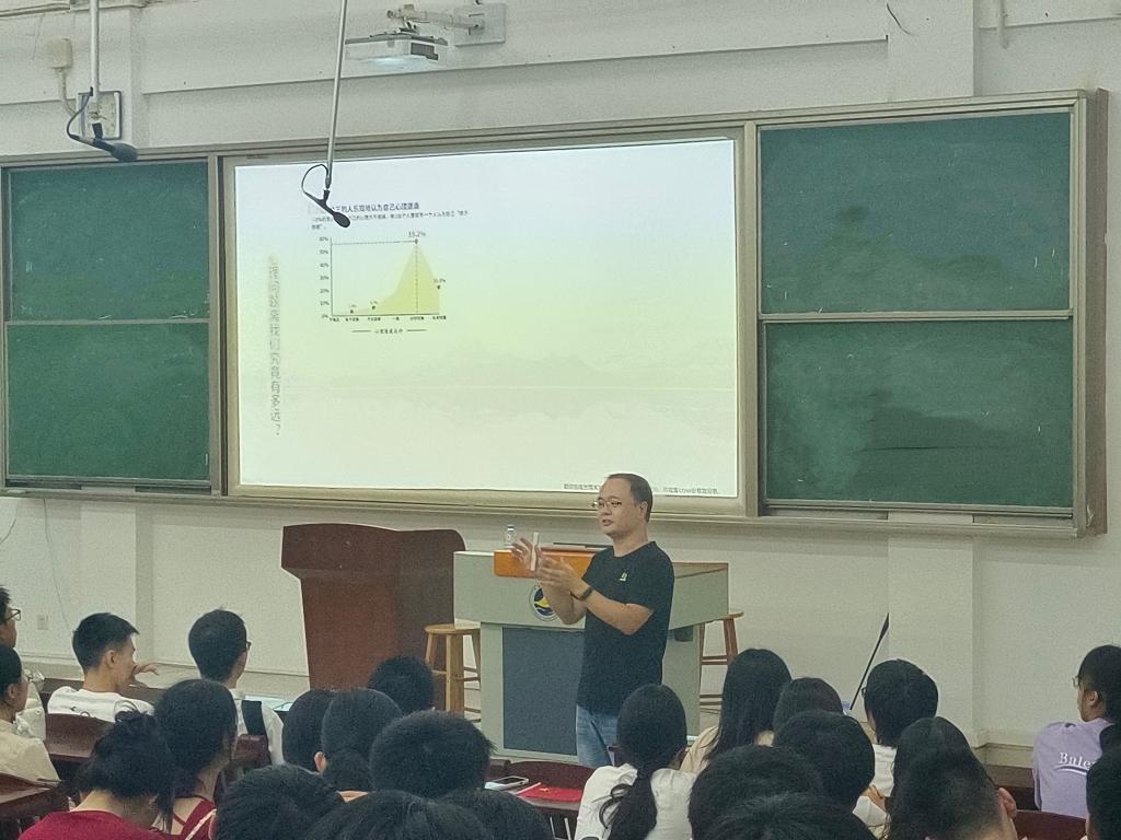 为帮助2023级新生更好地适应大学生活,提高心理健康水平,提高心理适应技能,经济学院联合学校心理健康教育与咨询中心,于9月12日晚上在钟海楼02031举办新生心理健康教育讲座。讲座由经济学院新生辅导员陈家敏主持,心理健康教育与咨询中心周济全老师主讲,全体2023级新生共计330余人参加。