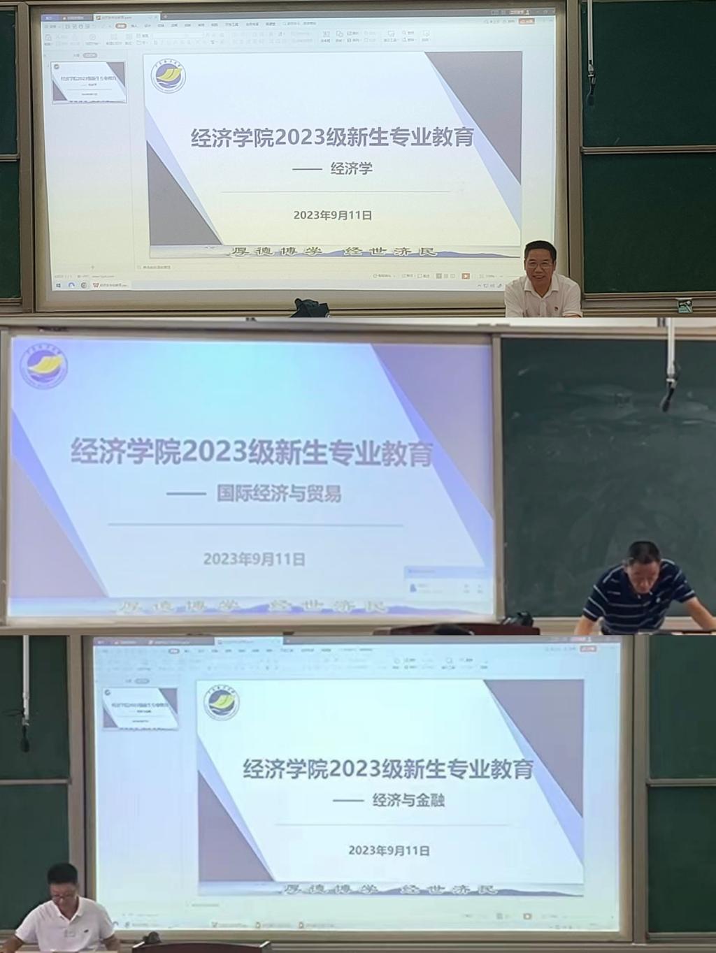 为了帮助2023级新生尽快适应大学阶段的学习和生活,促进新生探索自我可能性,进一步了解经济学科,增强新生对学院的集体归属感和学科专业的认同感,提升学术与职业发展能力,铺平未来的学术研究和职业道路。9月11日上午,经济学院在钟海楼分别开展了经济学、国际经济与贸易和经济与金融专业2023级本科生“‘四个讲清楚’之大学读什么?”专业教育会议。各系系主任、专业老师、新生辅导员与班主任以及全体新生参加。