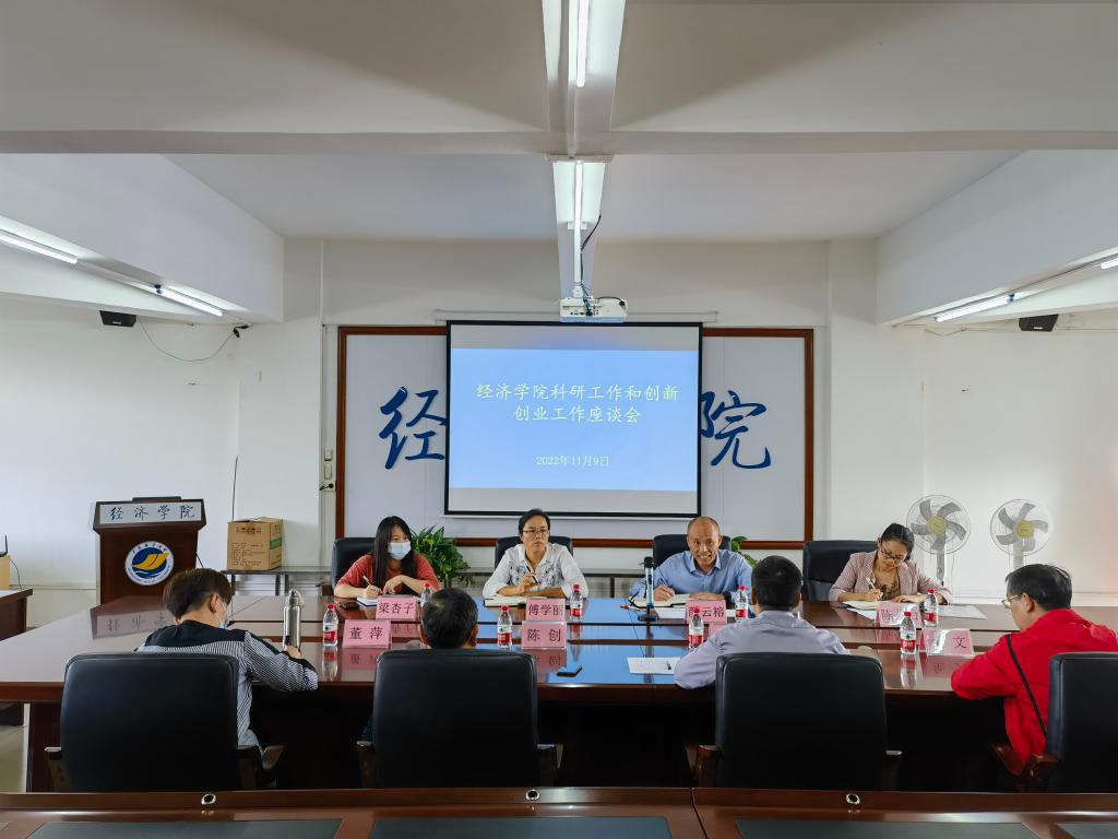 11月9日下午,经济学院在广学楼718召开学院科研工作和创新创业工作座谈会。科技处处长颜云榕、平台建设科科长傅学丽、社会科学管理科科长陈关怡、科员梁杏子,经济学院党委书记陈创、副书记董萍以及全体教职工参加会议。学院副院长陈伟主持会议。