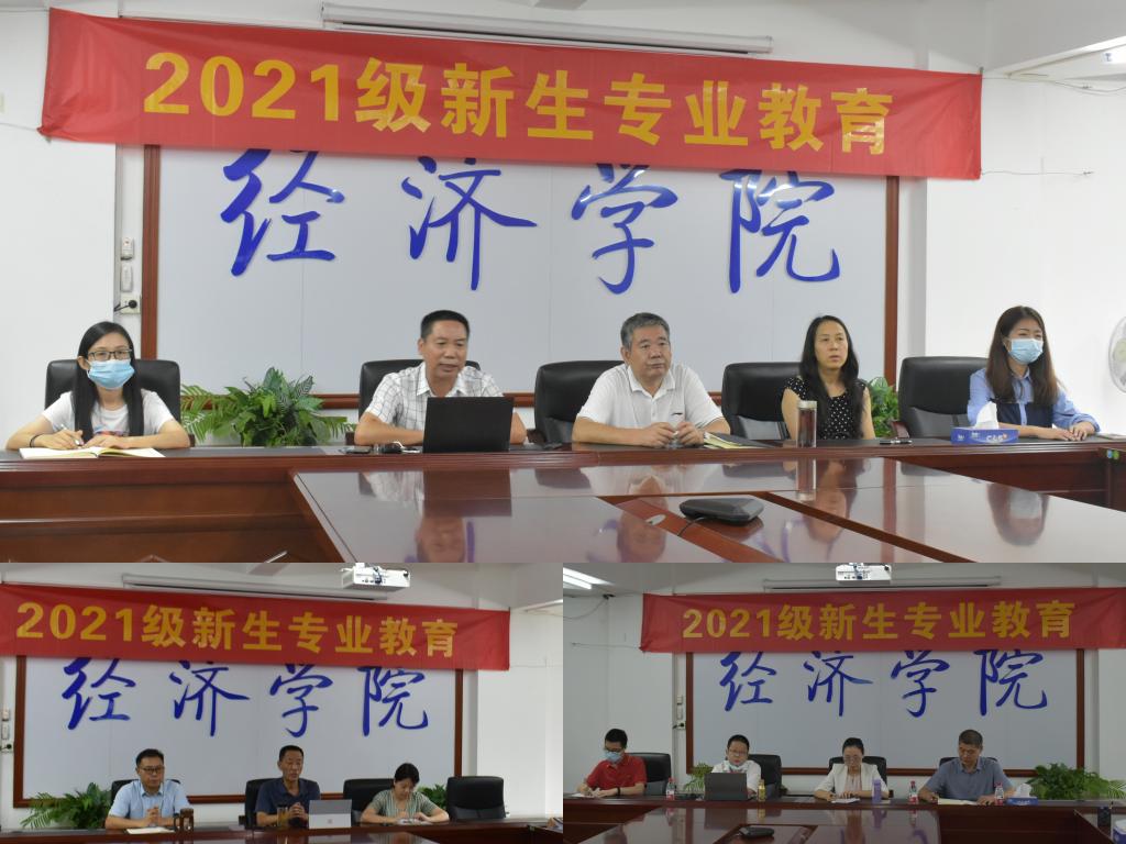 9月14日上午,经济学院面向2021级新生开展了专业教育,由经济系、国贸系、金融系负责分三个时间段组织实施。会议采用线上线下结合的形式,主会场设在主楼718室,全体2021级新生通过腾讯会议在线参加。