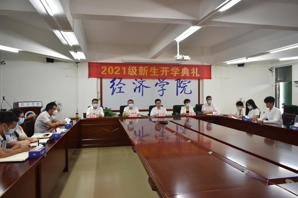 9月13日上午,经济学院师生齐聚“云端”,通过线上与线下相结合的方式举行2021级新生开学典礼。学院全体领导、各系正副主任、全体辅导员、新生班主任、教师代表和学生代表集中在主楼718会议室,其他教职工和全体新生通过腾讯会议在线参加。典礼仪式由学院党委书记肖文辉主持。