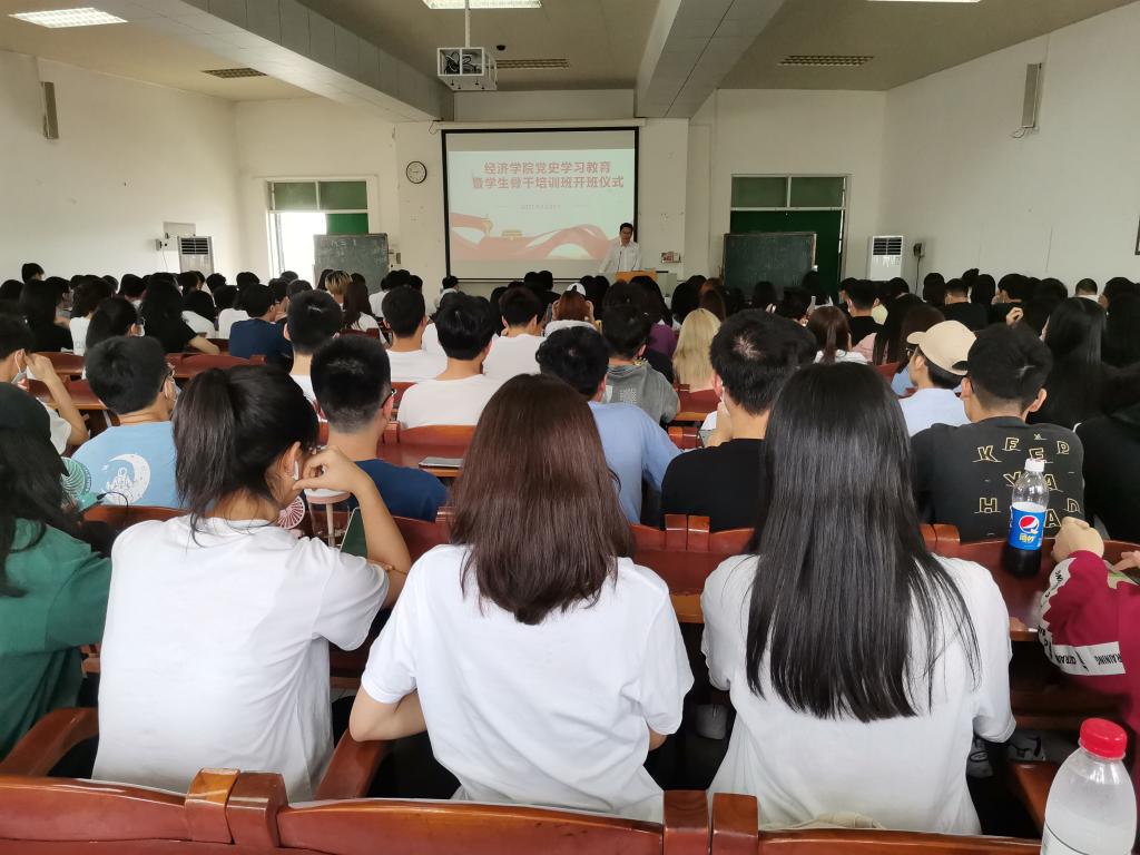 为学习贯彻习近平总书记在党史学习教育动员大会上的重要讲话精神,落实学校开展党史学习教育的动员部署以及校团委《关于在全校团员青年中开展“学党史、强信念、跟党走”学习教育系列活动的通知》精神,3月31日下午,在主楼327课室经济学院举行党史学习教育暨学生骨干培训班开班仪式。学院党委书记肖文辉、学工办老师及全院团学干部、学生党员、入党积极分子等200多人参加开班仪式。会议由学院团委书记李文河主持。