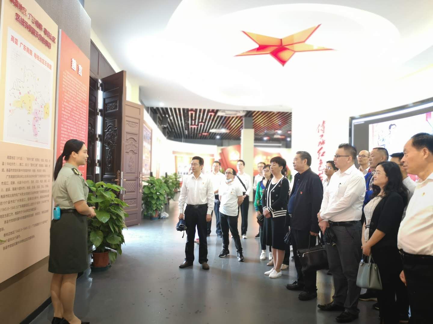 随后,全体人员进馆参观。大家一边参观柑村革命烈士生平事迹介绍和物品陈列,一边聆听革命先辈的英勇事迹。透过一张张泛黄的照片,一件件珍贵的旧物,伴随着讲解员的深情解说,七十多年前波澜壮阔的革命历史画卷缓缓展开,柑村是著名的革命老区村,拥有丰富的红色资源,先后有35人参加中国共产党,近千人参加革命活动,数十人为国捐躯,为革命所作贡献之大,牺牲人数之多,在整个南路是少有的。每一位党员干部在参观过程中都深受感动、倍觉鼓舞,大家一起追忆着当年革命故事,被“开拓进取、敢为人先、求真务实、夯实基层、艰苦卓绝、信念坚定”的南路革命精神所深深感染。