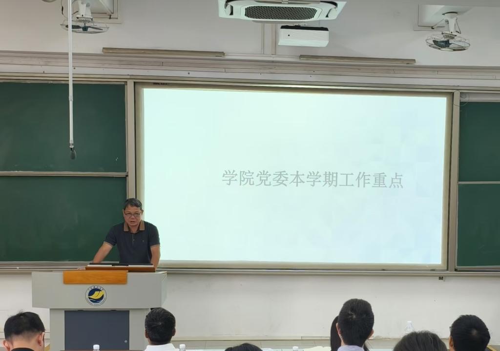 会上,副院长杨丽华教授从研究生教育、学科建设、科研工作等方面对新学期工作进行了安排;院长陈伟教授对本学期本科教学的重点工作、学院行政工作进行了布置;吴金年老师替学院正处级辅导员、党委副书记钟桂安汇报了新学期学生工作的工作计划,强调了即将到来的迎新工作分工安排;学院党委书记陈创对下半年党建工作计划进行了部署,对重点工作推进进行了详细分工。