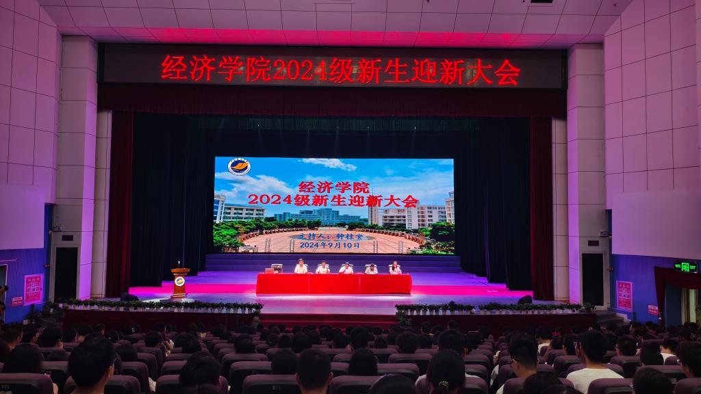金秋九月,丹桂飘香。9月10日,经济学院在湖光校区中歌艺术实验剧场举行了新生迎新大会。学院党政领导、各系正副主任、全体辅导员、新生班主任及班主任助理、在校生代表,以及2024级全体本科新生共同出席了大会。大会由学院正处级辅导员、党委副书记钟桂安主持。