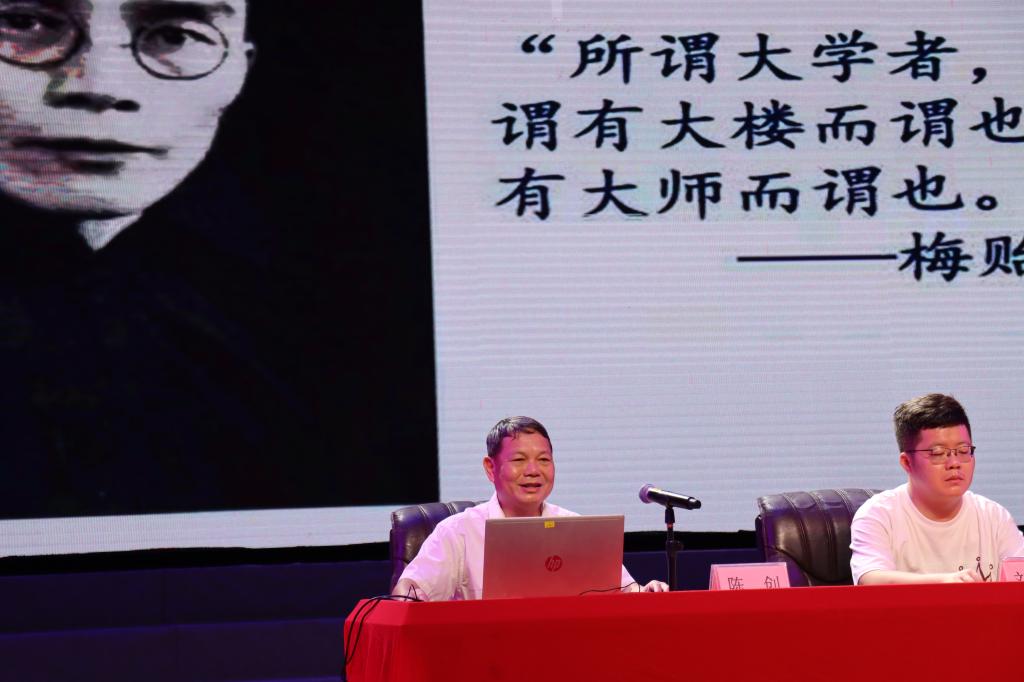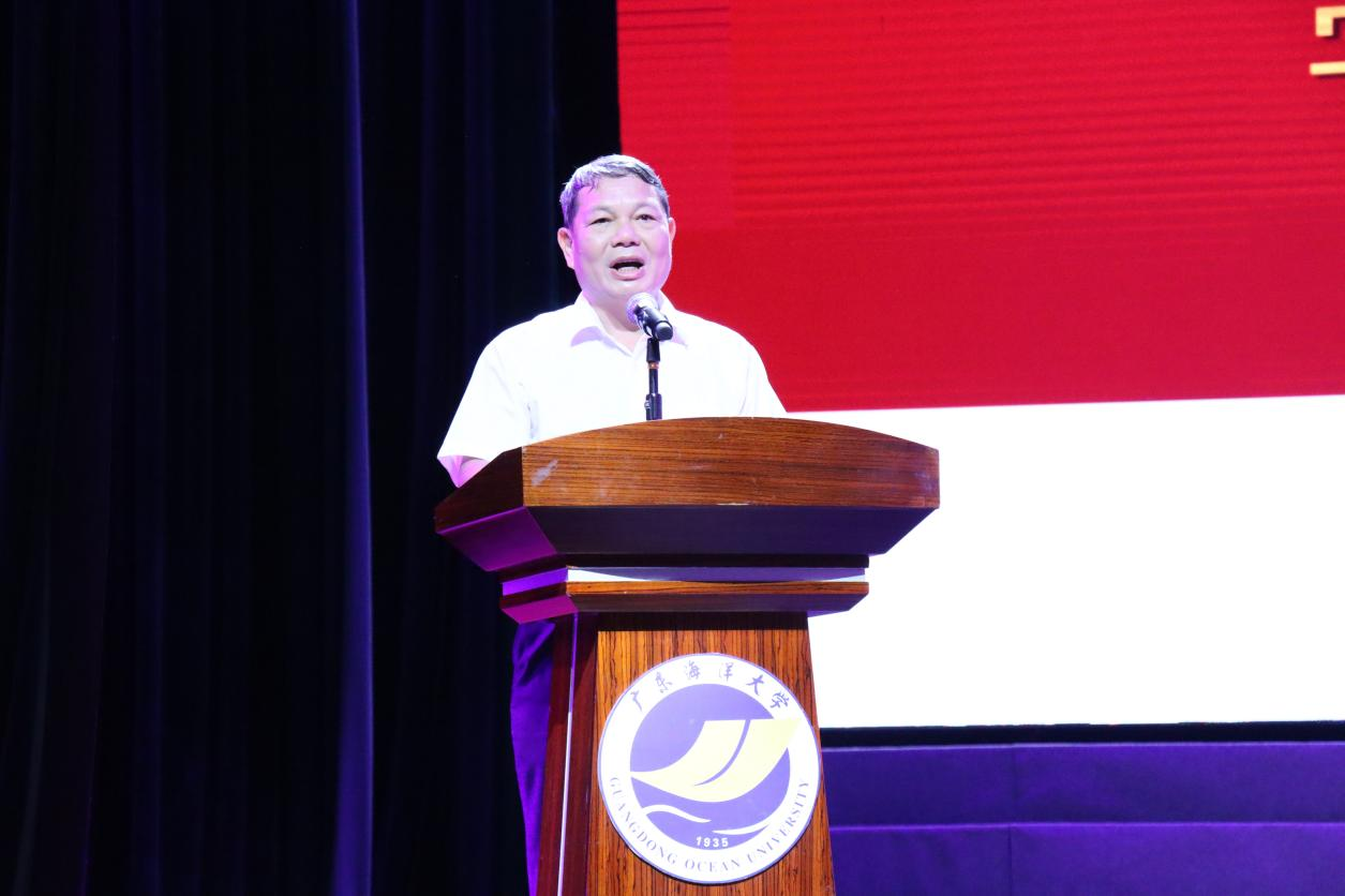 大会在庄严的国歌中拉开帷幕。首先,学院党委书记陈创致欢迎辞,向全体新生致以热烈的欢迎和真挚的祝福,温馨的言辞中对新生美好的未来充满了期许。随后,陈书记以《何为大学及初识广东海洋大学》为题讲了学院党委书记第一课,围绕“大学是什么”这一深刻主题,从多个维度引导新生们深入探索大学的真谛,诠释了大学不仅是传授知识的地方,更是培养人格、塑造价值观的殿堂。
