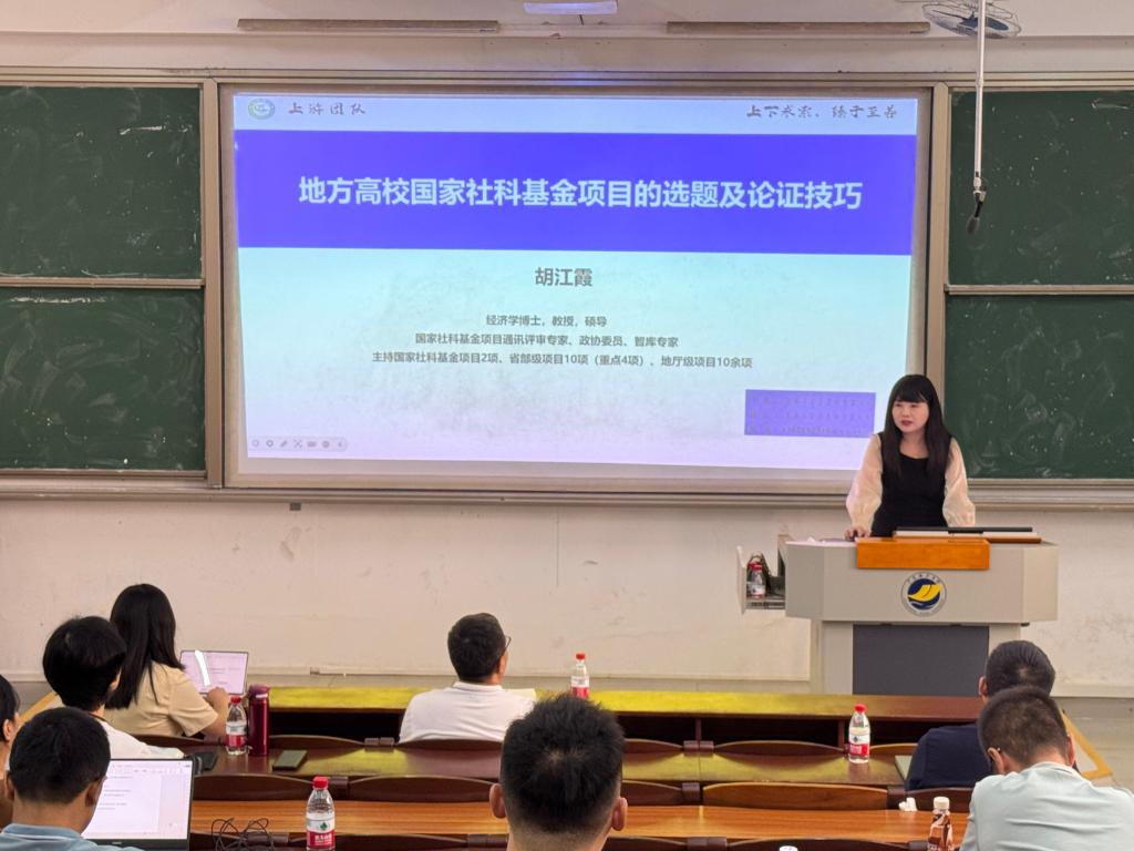 为进一步提升我院教师的科研能力,并有效助力国家社科基金项目的申报工作,经济学院于2024年10月9日下午在钟海楼03020室隆重举办了国家社科基金申报辅导报告会。本次报告会特邀长江师范学院杰出学者胡江霞教授作为主讲嘉宾,为我院教师提供专业的指导。学院院长陈伟、副院长杨丽华、学院正处级辅导员、党委副书记、纪委书记钟桂安,以及全体专任教师与辅导员均出席会议。