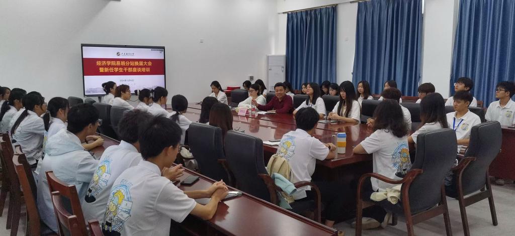 12月4日下午,广东海洋大学经济学院易班分站在文科楼3号楼715会议室举办换届大会暨新任学生干部培训。学院正处级辅导员、党委副书记钟桂安、指导老师李斯雯以及分站全体成员参加了会议。
