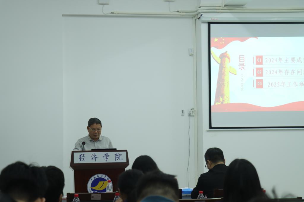 3月5日下午,经济学院在湖光校区文科楼3号楼508报告厅召开2025年春季学期工作会议,学院全体教职员工参加了会议,会议由学院党委书记陈创主持。