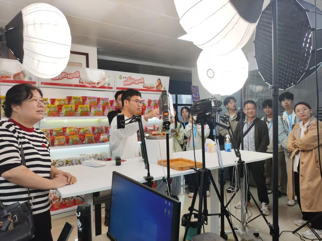 在电商大厅,师生们深度调研了直播电商全流程运营体系。从主播互动技巧到数据监测分析,从z6尊龙凯时集团的产品展示策略到流量转化机制,“食神”品牌营销负责人王经理现场拆解行业最新动态,为同学们上了一趟精彩的实践课。现场设置的“主播体验岗”让同学们直呼过瘾,多名学生代表通过实训,初步了解了直播话术设计、产品卖点提炼等实用技能,这一真实场景教学有效弥补了传统课堂的实操短板。