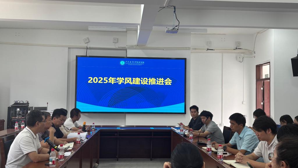 5 月 26 日上午,经济学院于文科楼 3 号楼 508 会议室召开 2025 年学风建设推进会,深入贯彻落实《广东海洋大学学风建设三年行动方案(2025-2027 年)》,全面部署推进学院学风建设重点工作。学院党委书记陈创,院长陈伟,正处级辅导员、党委副书记钟桂安,副院长杨丽华、罗帅出席会议,全体系主任、辅导员、班主任及教师代表齐聚一堂,共同研判,扎实推进学风建设。本次会议由钟桂安主持。