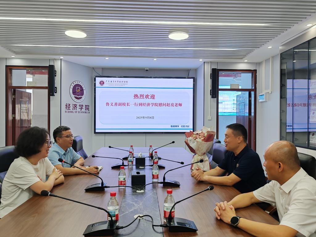 金秋时节,桃李芬芳,为激励广大教师潜心育人、勇攀高峰,9月8日上午,鲁义善副校长在科技部颜云榕部长、经济学院党委书记陈创、陈伟院长陪同下,来到经济学院看望慰问优秀青年教师代表赵亮教授,向他致以诚挚的问候,并对其在科研领域取得的突出成绩表示热烈祝贺。