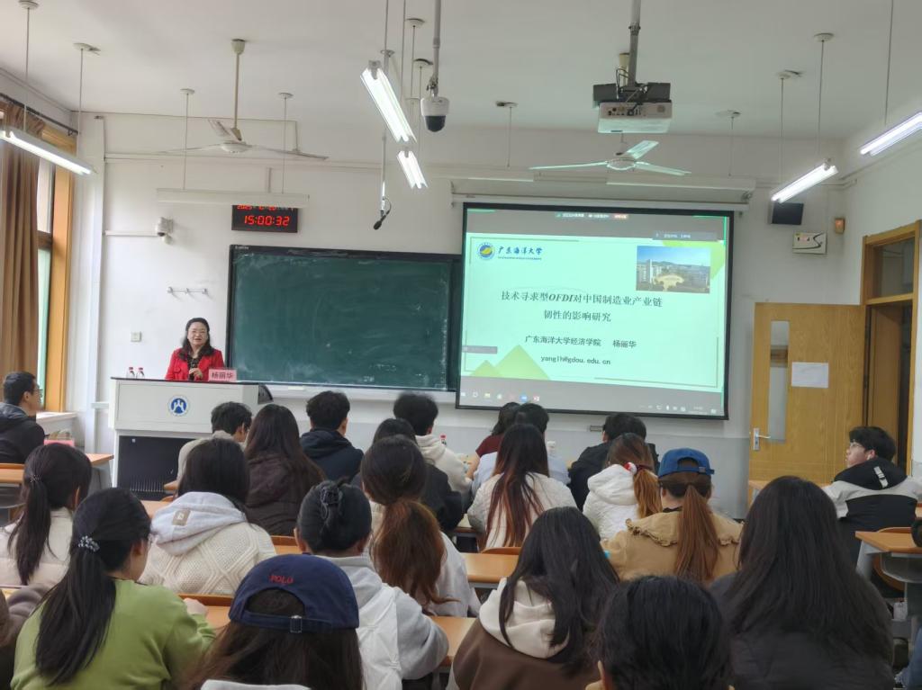 2025年10月20日,我院副院长杨丽华教授应邀赴山东财经大学,为国际经贸学院研究生作专题学术讲座,围绕“技术寻求型ofdi对中国制造业产业链韧性的影响”展开深度分享。我院姚微博士、陈家敏辅导员和陈丽如老师也一起参加。