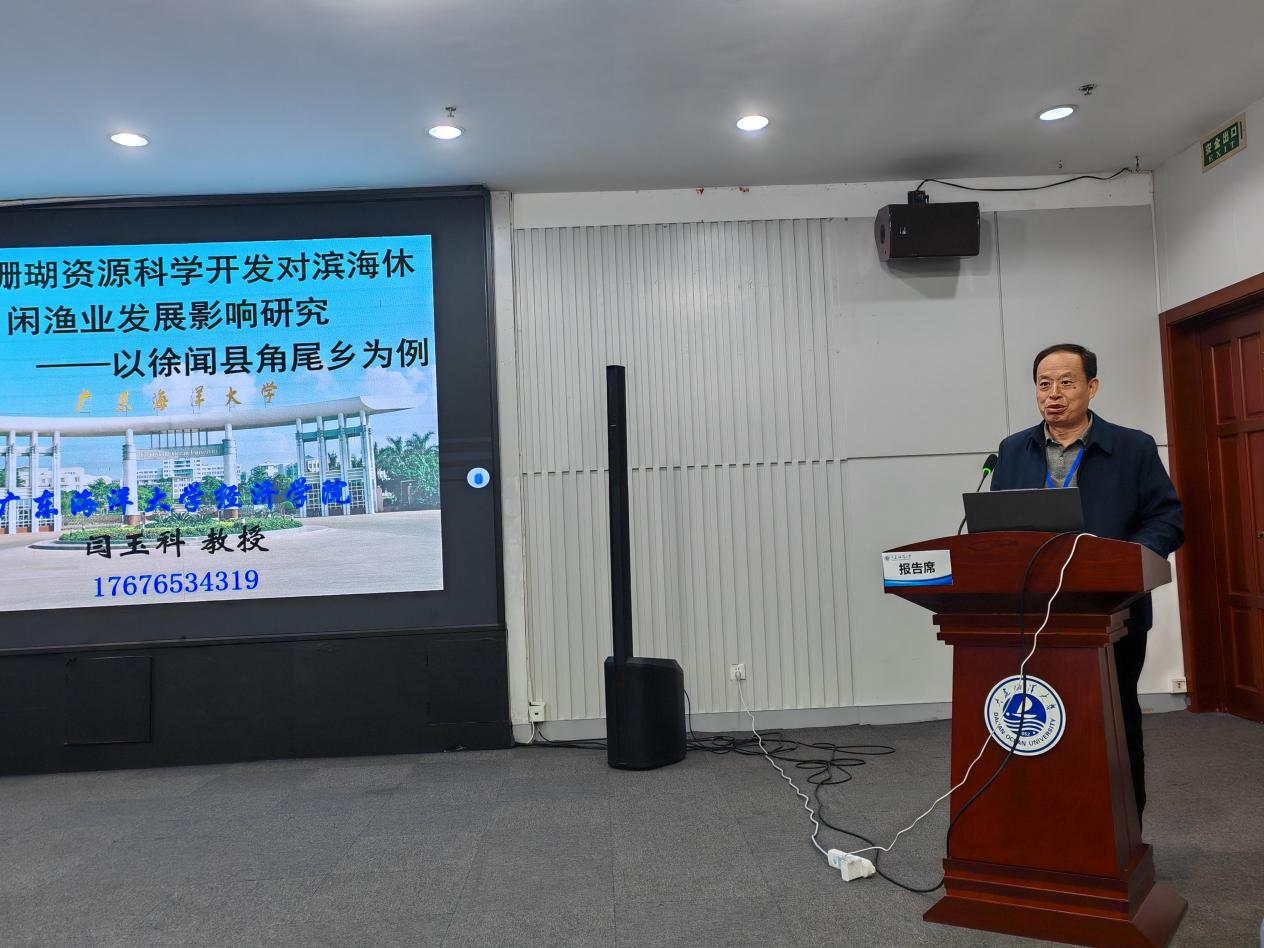 陈伟院长主持了中国林牧渔业经济学会渔业经济专业委员会和中国水产学会渔业经济与政策专业委员会专家论坛;闫玉科教授以“南海珊瑚资源科学开发对滨海休闲渔业发展影响研究——以徐闻县角尾乡为例”为题做了专题报告。报告概述了南海珊瑚资源科学开发的现状、南海滨海休闲渔业发展的现状和南海珊瑚资源科学开发对滨海休闲渔业发展影响的现状,系统分析了徐闻县角尾乡珊瑚资源科学开发与有效利用产品开发初级化,有效治理体系待完善,共赢机制未建立等问题,并提出了坚持新发展理念科学开发珊瑚资源,深度开发珊瑚文化和渔家文化,科学构建有效珊瑚保护与开发治理体系,建设“专业管护创新研发志愿服务”人才队伍等科学开发利用南海珊瑚资源促使滨海休闲渔业高质量发展的系列对策建议。报告内容受到了与会领导、专家的高度评价,引发了热烈讨论,为我国滨海休闲渔业特色化高质量发展指明了方向。