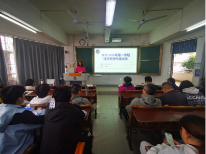 为进一步加强师生沟通,提升教育教学质量,推动学风建设,11月19日下午,经济系在广学楼218教室召开期中师生座谈会。经济系教师代表与各年级班委代表共同参会,会议由经济系副主任邹伟勇主持。