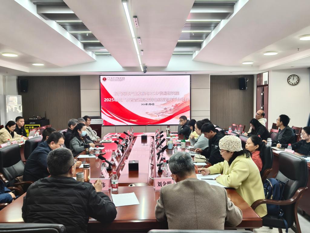 2026年1月8日上午,经济学院在博文楼c座715会议室召开海洋经济学科团队研讨会,同步启动 “现代海洋产业与rcep贸易研究院”(以下简称“研究院”)建设工作。会议由平台负责人杨丽华教授主持,学院党委书记刘金明、院长陈伟、副院长罗帅及学科核心团队成员参加会议。