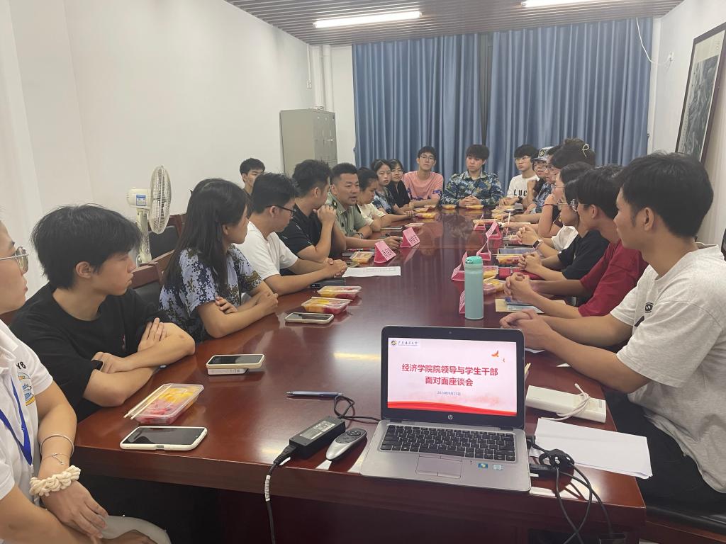 为全面掌握学生思想动态,帮助学生解决实际困难,9月25日晚,经济学院在湖光校区文科楼712室举办了学生干部调研座谈会。学院正处辅导员、党委副书记钟桂安、辅导员肖启映及各年级学生干部代表、新生军训负责人等参加了会议,会议由肖启映老师主持。