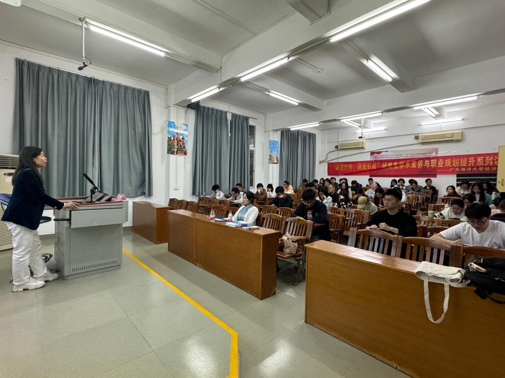 2024年12月9日,经济学院于霞山校区教学楼b202举办了“研途灯塔,微光引航”研究生学术素养与职业规划提升系列讲座第二期活动。本次讲座由辅导员陈家敏主持,邀请北京锐思数据科技有限公司高小玲经理作为培训专家,经济学院李小涛博士、经济学院与管理学院研究生共计一百余人参加。