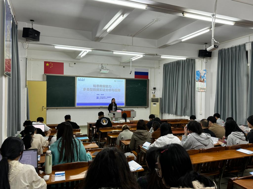 高小玲经理以《锐思数据助力多类型数据实证分析与应用》为题,对锐思(resset)数据产品的特色、架构体系、数据定制服务进行了简介;详细介绍了学校已购及试用resset数据库的数据内容和使用方法,并以案例的形式讲解了如何运用锐思数据库开展实证研究,完成实证论文的写作;并就如何优化数据产品的使用效果、如何通过锐思数据产品提高数据处理效率进行了深入讲解。