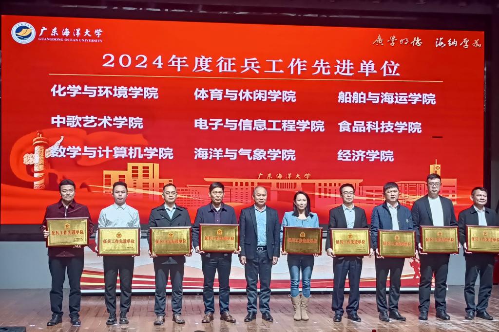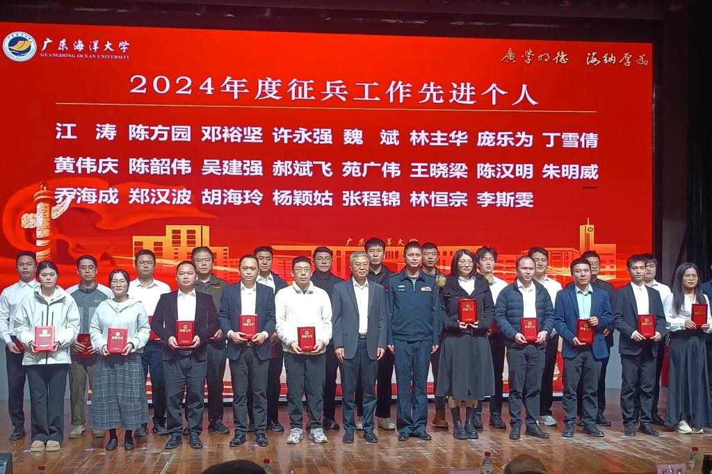 12月25日下午,广东海洋大学在湖光校区广学楼多功能厅隆重举行了2025年征兵宣传启动仪式。经济学院分管学生工作的正处级辅导员、党委副书记钟桂安和兼职武装老师李斯雯、毕业班辅导员叶梦怡以及学院毕业班学生代表参加了学校的启动仪式。