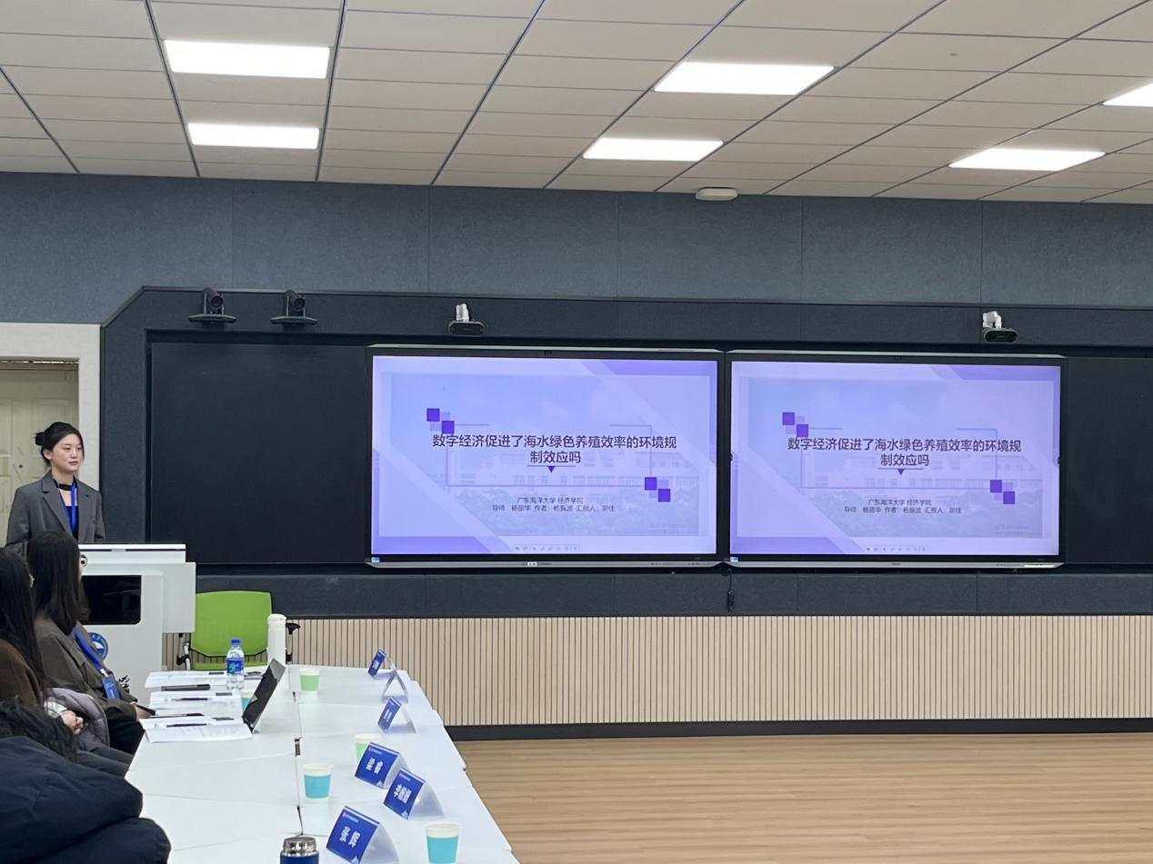 经济学院杨丽华教授与研究生杨振波同学的合作论文《数字经济促进了海水绿色养殖效率的环境规制效应吗》提交大会并成功入选,在平行分论坛上进行学术报告,研究生胡佳代表团队作论文汇报。论文选取2010年至2019年间中国9个沿海地区省级面板数据为样本,运用sbm模型进行特征事实分析,并基于固定效应模型深入剖析了数字经济技术对海水绿色养殖效率的影响效应及其调节作用。此次报告得到了与会专家的肯定与专业建议,也展示了我院研究生的学术风采。