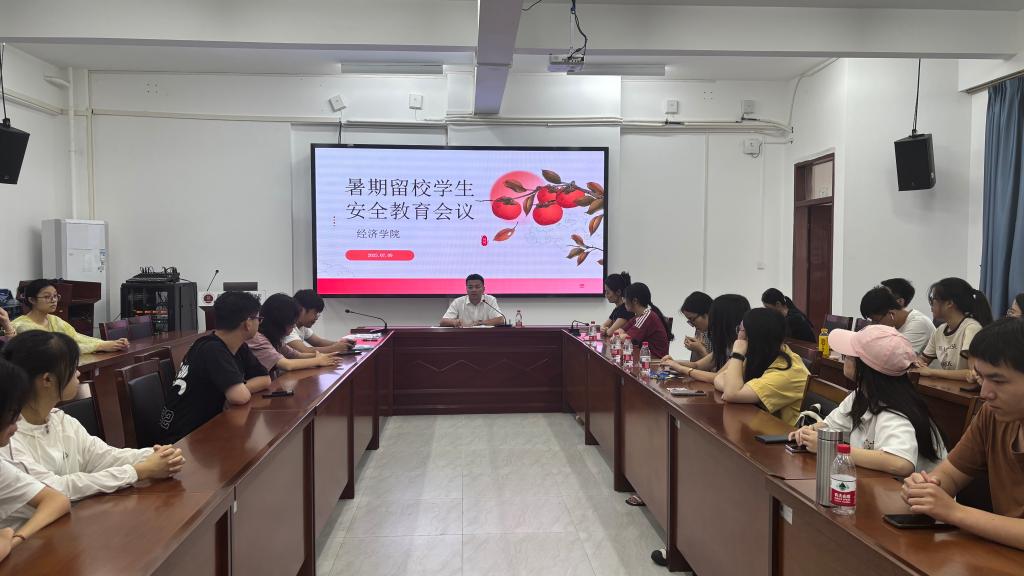 为扎实做好暑假留校学生教育管理服务工作,7 月 9 日下午,广东海洋大学经济学院在文科楼 3 号楼 508 召开暑期留校安全教育会议。正处级辅导员、学院党委副书记钟桂安,留校学生分管辅导员及 34 名留校学生参会,会议由温莉莉主持。
