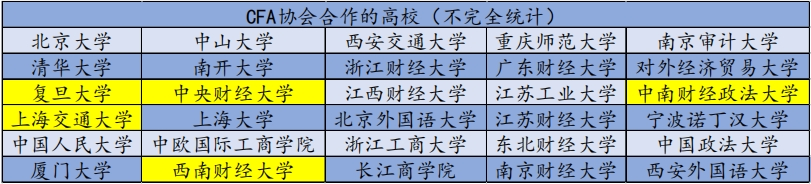 目前,国内多所财经类院校均引入cfa课程,以此来提高教学质量,拓宽学生国际视野以及专业知识面。在研究生择校阶段,cfa frm班的学生可优先考虑cfa/frm密切合作的高校。在研究生面试环节中,学生对于专业知识的阐释具有优势,且一定程度上也将会证明该生对研究生课程的胜任能力。