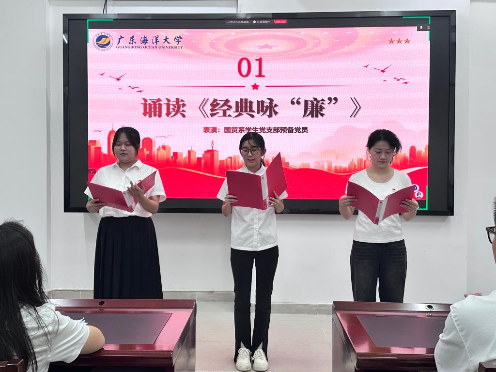 为深入贯彻中央八项规定精神学习教育,筑牢毕业生党员拒腐防变思想根基,强化党员身份意识与责任担当,6月20日下午,经济学院国贸系学生党支部精心策划并成功举办“清风和韵颂廉心”主题歌咏诵读活动。支部党员、发展对象、积极分子等共71名学生和老师参与。